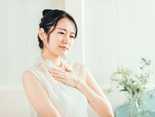 4.瞼を優しく閉じ、手からの熱を感じる